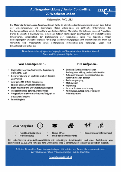 Auftragsabwicklung / Junior Controlling (20 Wochenstunden)